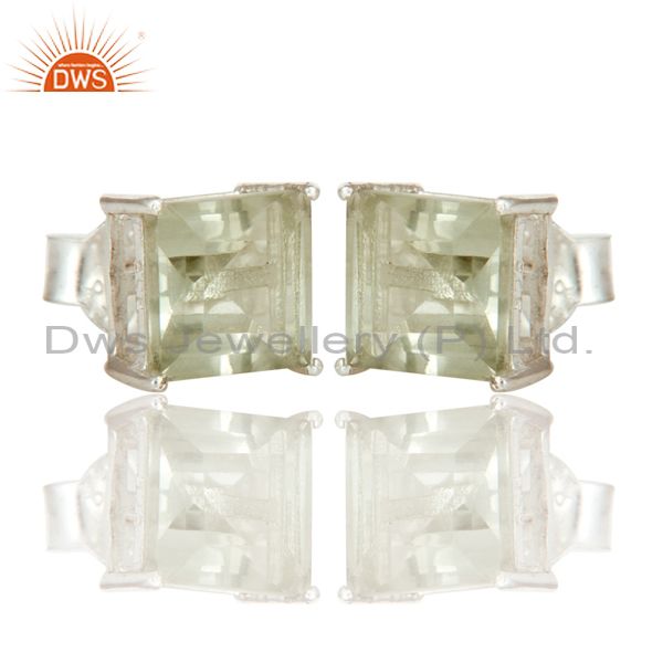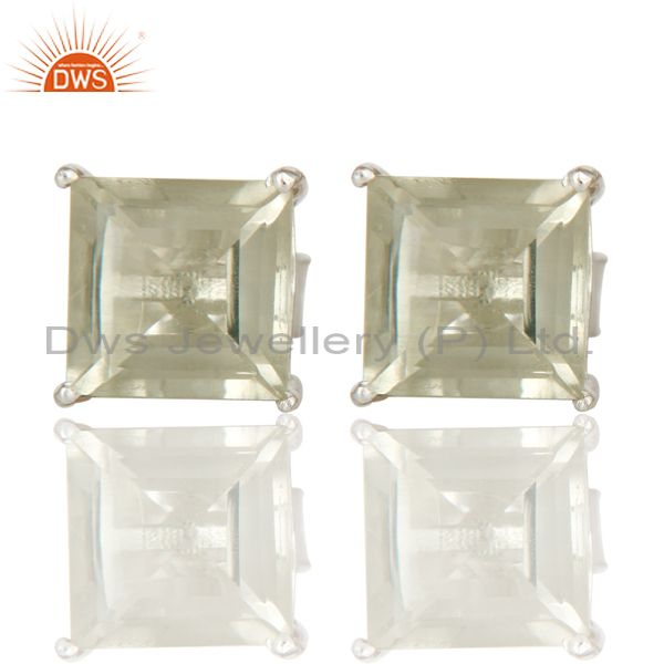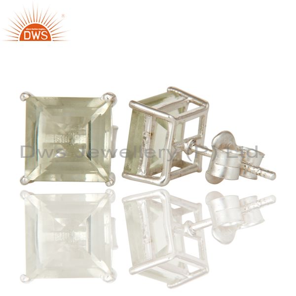 Green Amethyst AKA Prasiolite Gemstone 925 Sterling Silver Prong Stud Earrings