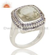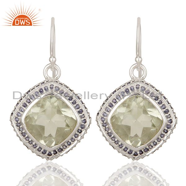 Green Amethyst And Iolite Gemstone Dangle Earrings In Sterling Silver