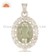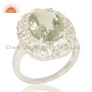 Green Amethyst And White Topaz Gemstone Dangle Earrings In Sterling Silver