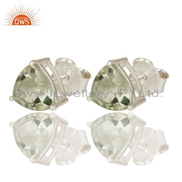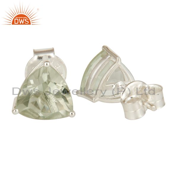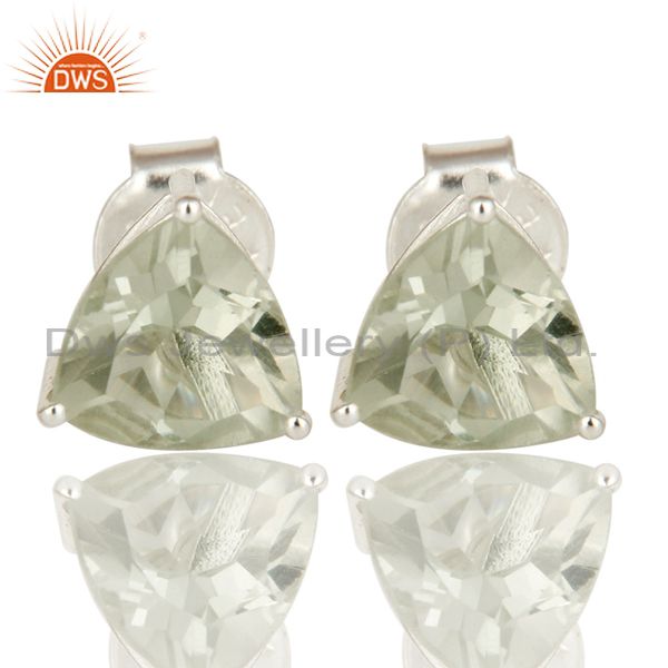 Green Amethyst Trillion Basket Set Stud Earrings For Womens In Sterling Silver