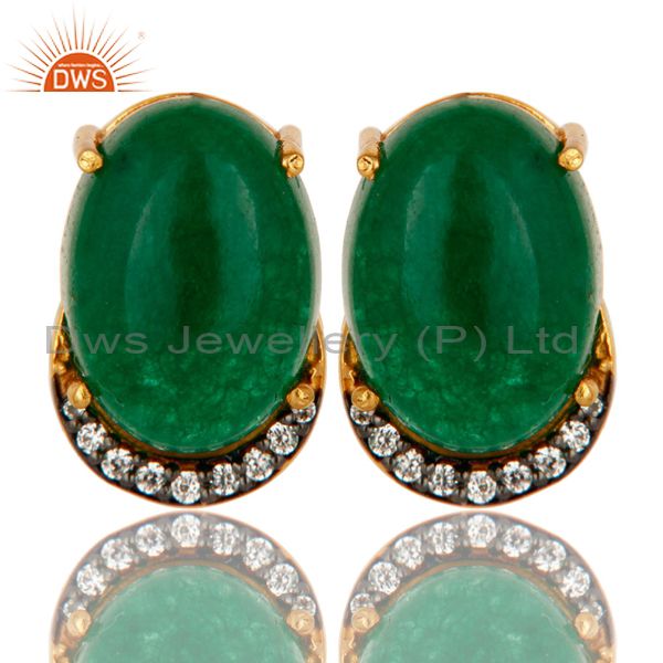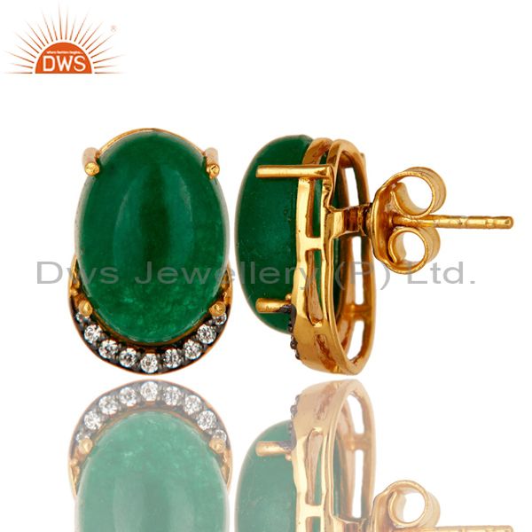 Green Aventurine And Cz 18K Gold Plated Sterling Silver Prong Set Stud Earrings