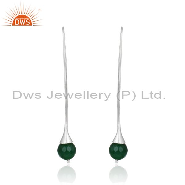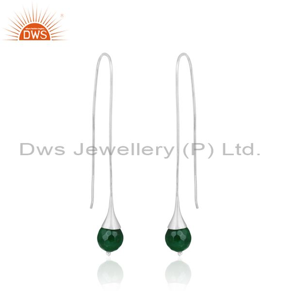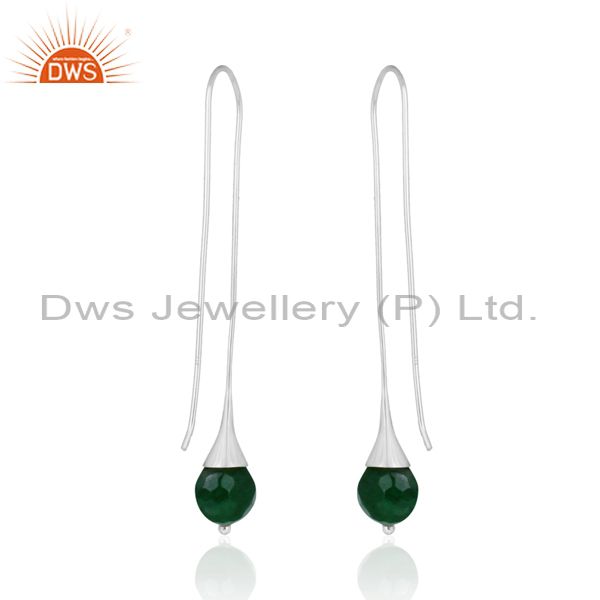 Green Aventurine Ball Designer Long Drop Earring in Solid Silver
