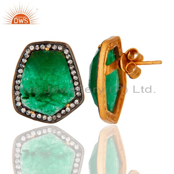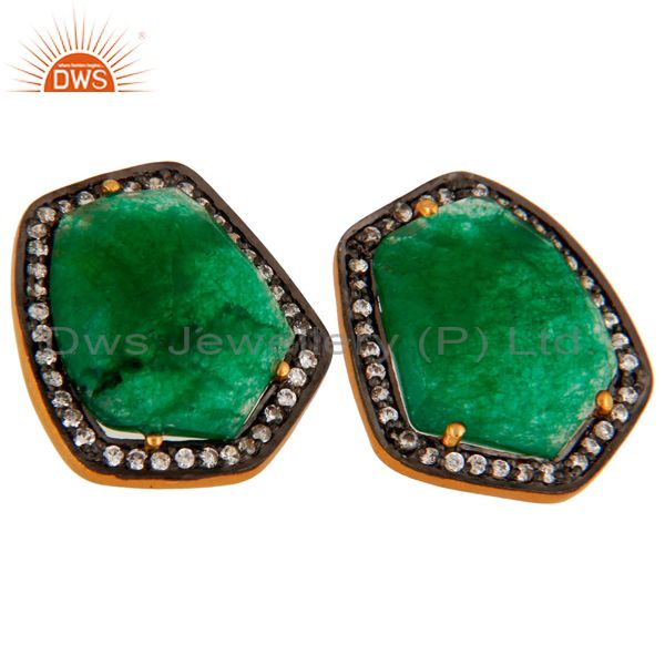 Green Aventurine Gemstone Stud Earrings In 18K Gold Over Sterling Silver Jewelry