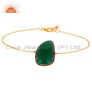 Green Aventurine Gemstone Stud Earrings With CZ Made In 18K Gold Over 925 Silver