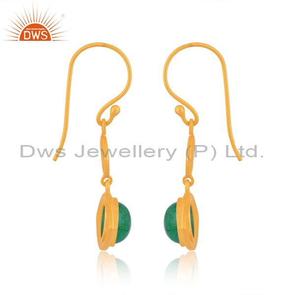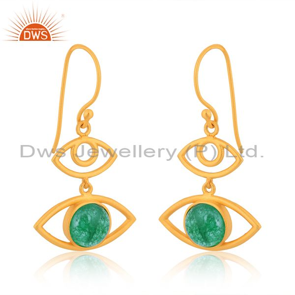 Green Aventurine Gold Plated Silver Evil Eye Design Earring