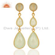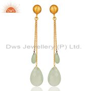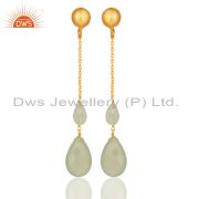 Green Chalcedony Gemstone 925 Sterling Silver With Gold Plated Drop Earrings