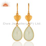 Green Chalcedony Gemstone Drop Earrings In 18K Gold Over Sterling Silver