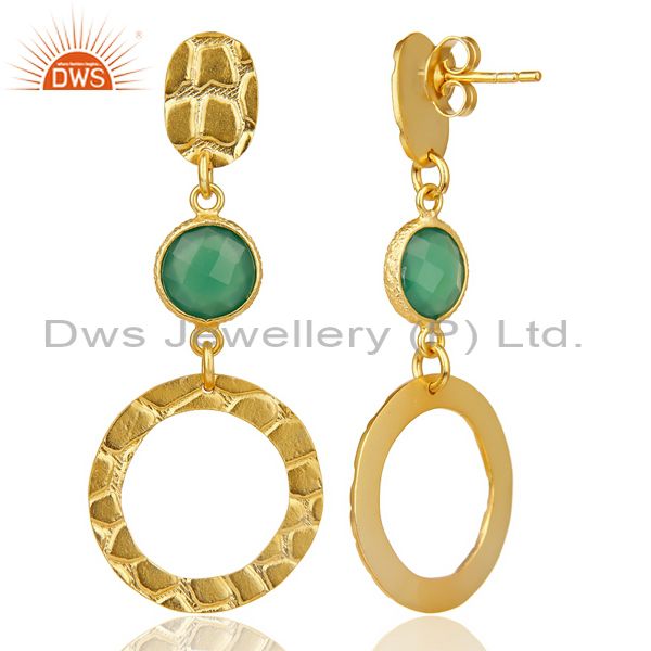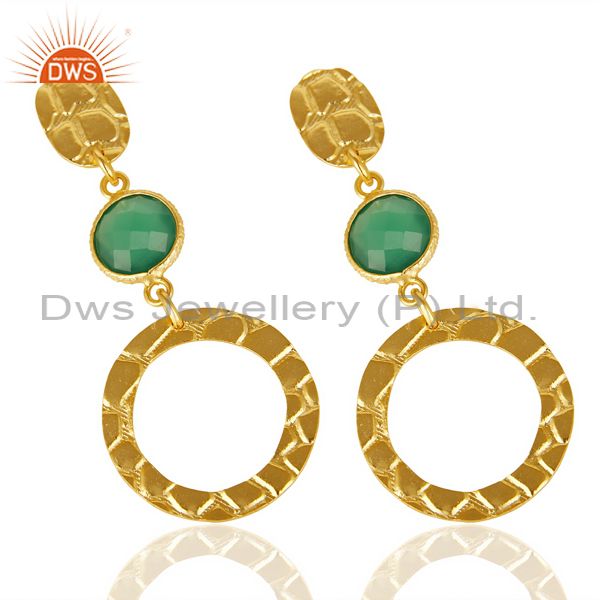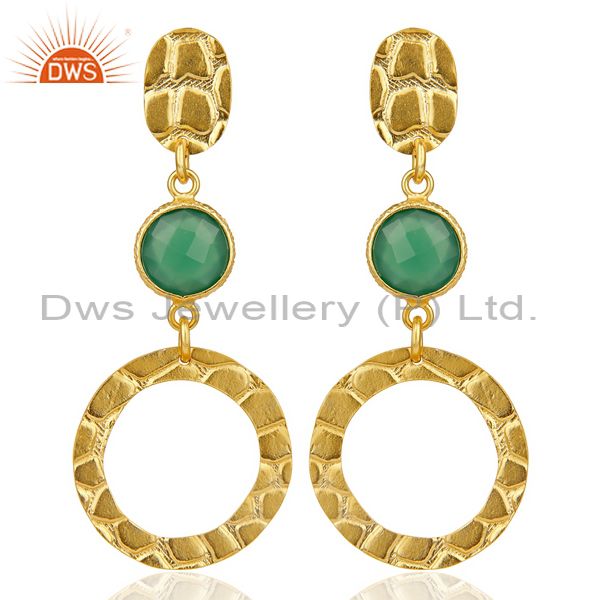 Green Onyx Alligator Texture Dangle 14K Gold Plated 92.5 Sterling Silver Earring