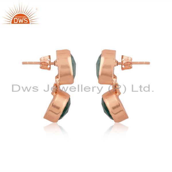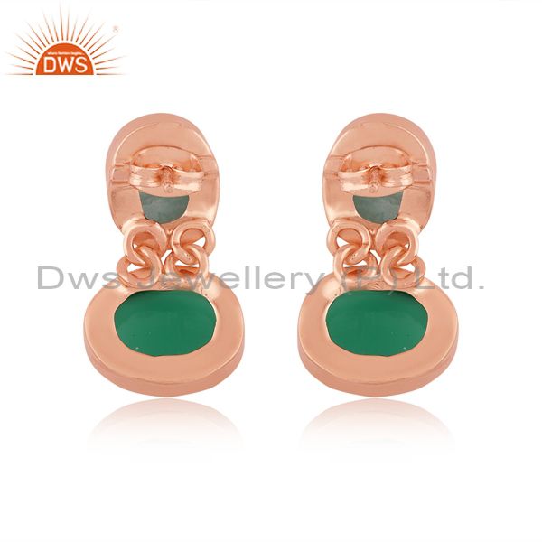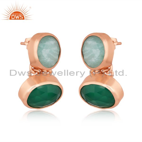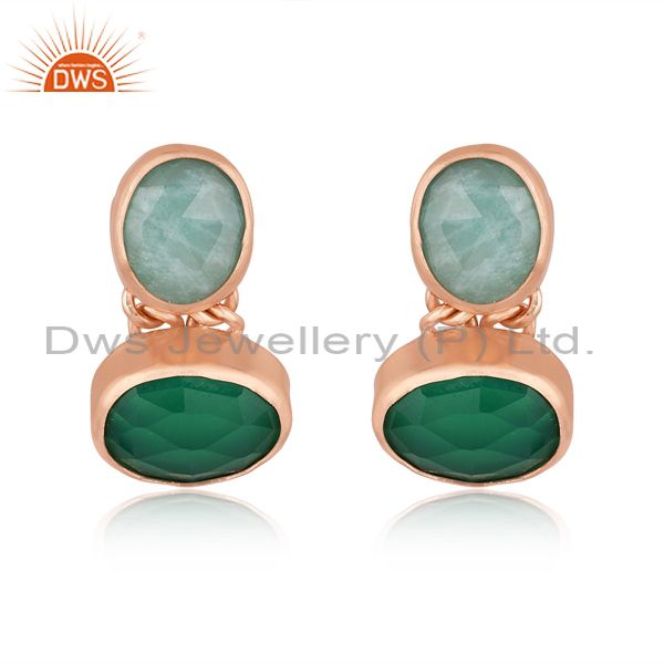 Green Onyx And Amazonite Set Rose Gold On Brass Earrings