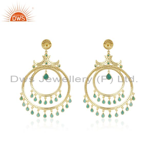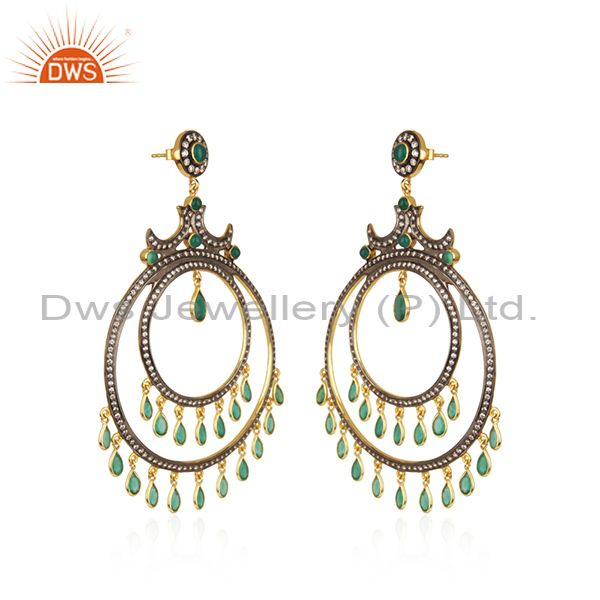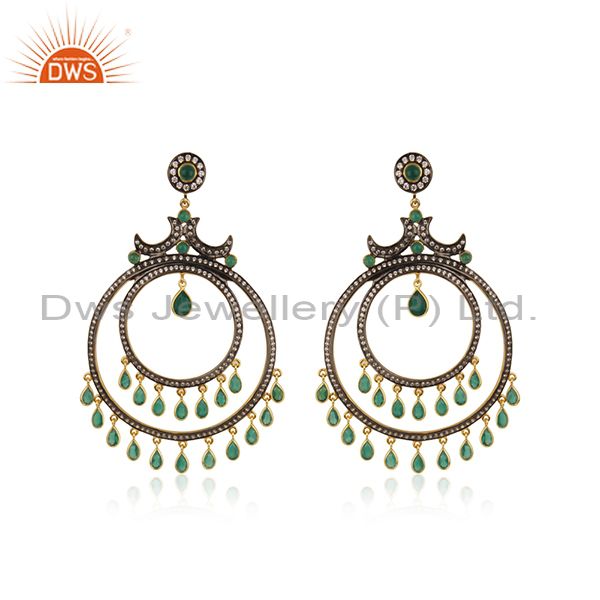 Green Onyx and White CZ 18K Gold Plated Sterling Silver Traditional Stud Earring