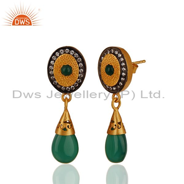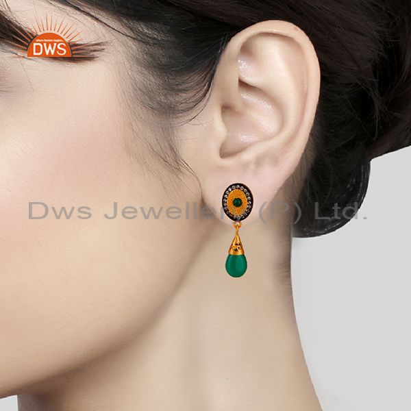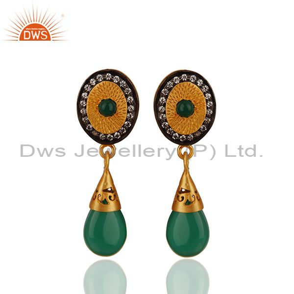 Green Onyx and Zircon Gemstone 925 Silver Drop Earrings Manufacturer