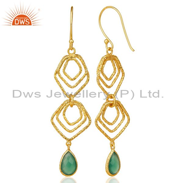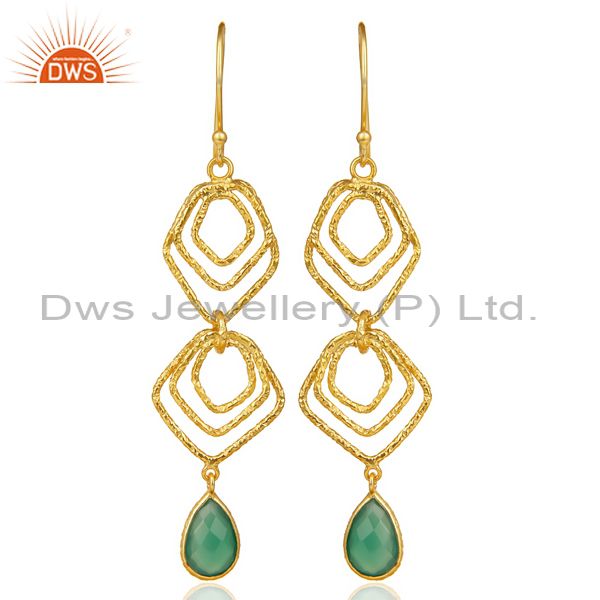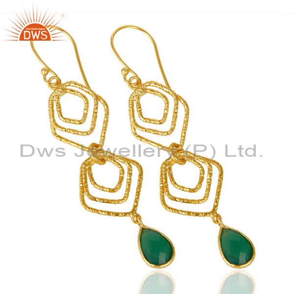 Green Onyx Asymmetrical Dangle 14K Gold Plated 92.5 Sterling Silver Earring