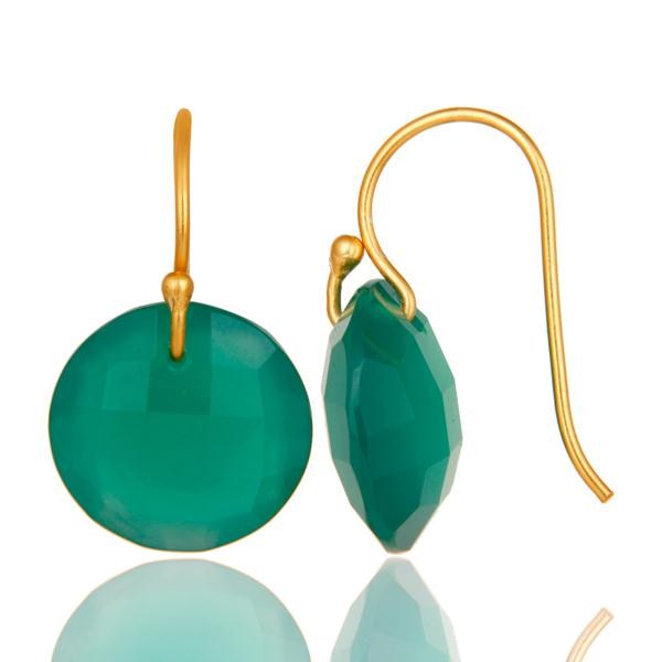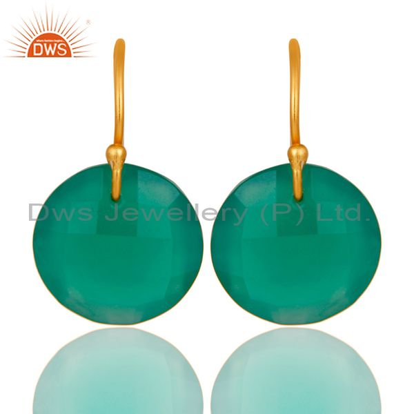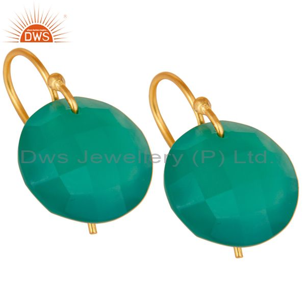 Green Onyx Faceted Round Shape Gemstone Dangle Earrings In 18K Gold On Silver