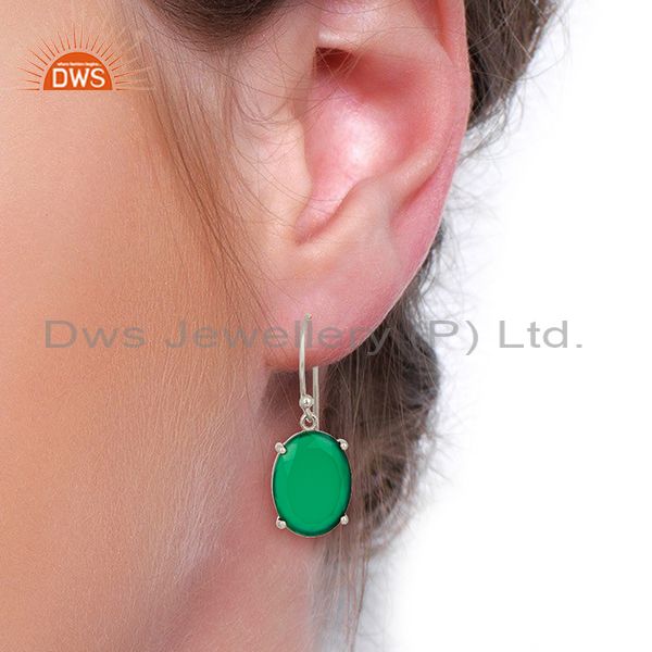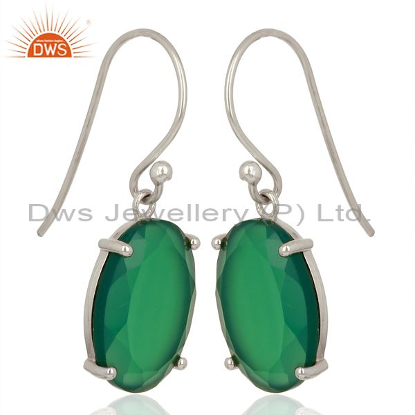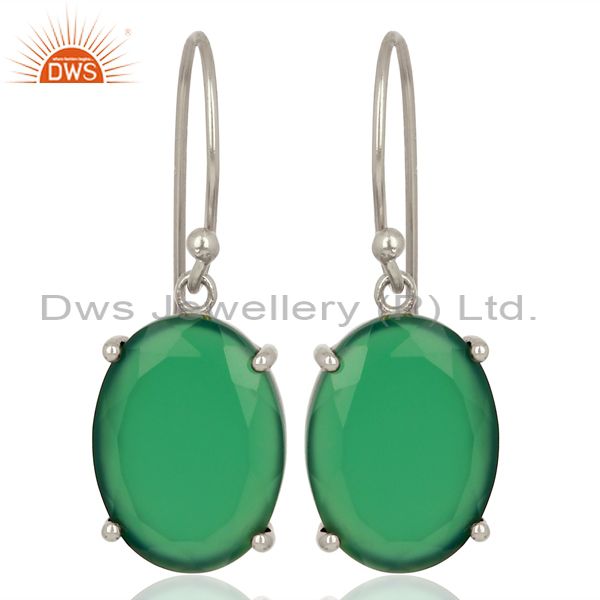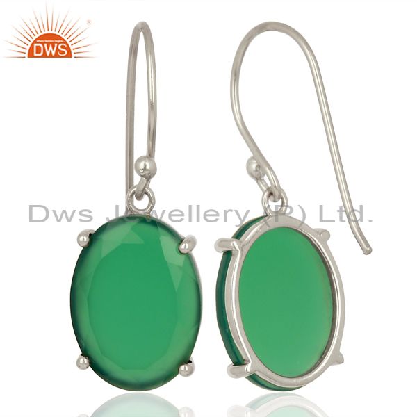 Green Onyx Flat Shape Pefect Oval Drop Wholesale 92.5 Sterling Silver Earring