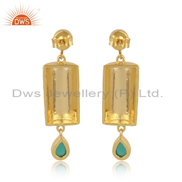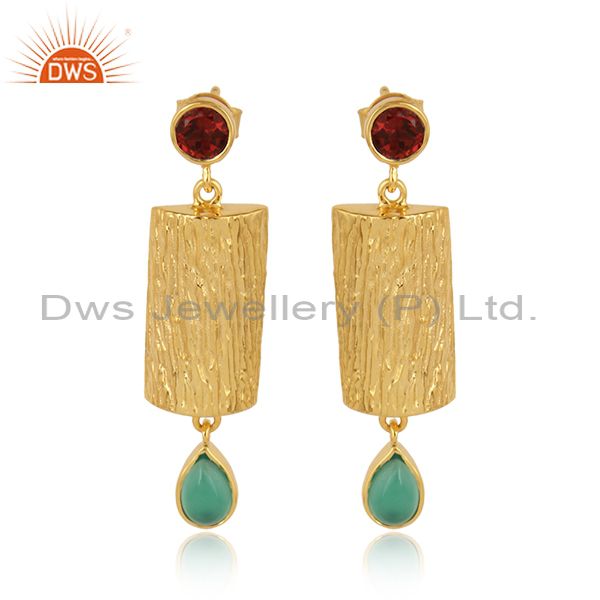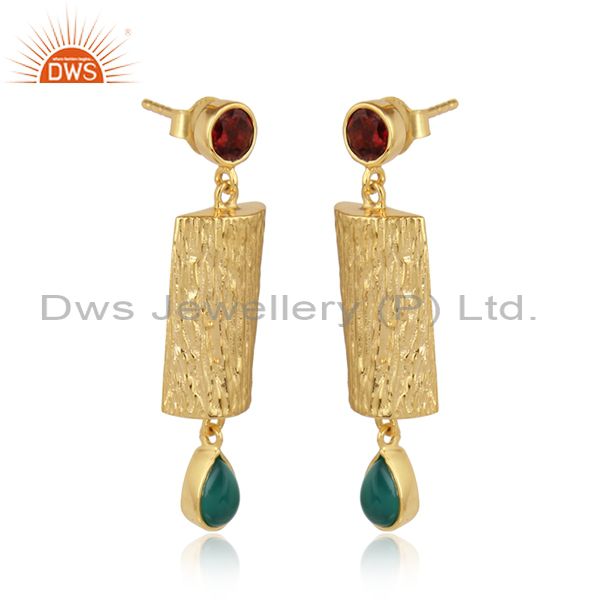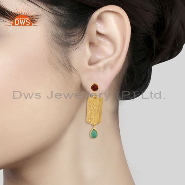Green Onyx Garnet Gemstone Gold Plated Designer Silver Earrings