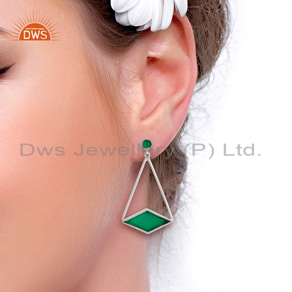 Green Onyx Gemstone 925 Sterling Silver Fashion Earrings Supplier