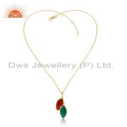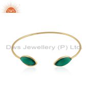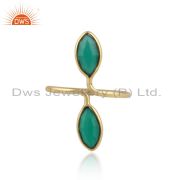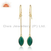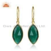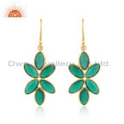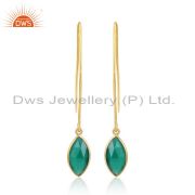 Green Onyx Gemstone Designer Sterling Silver Gold Plated Stud Earrings