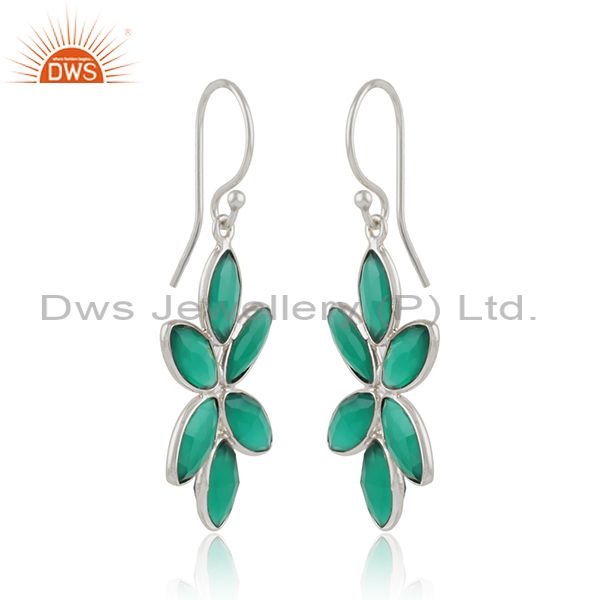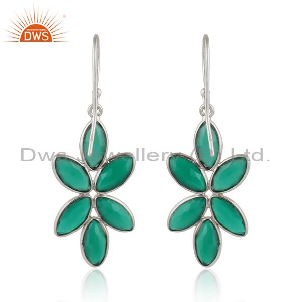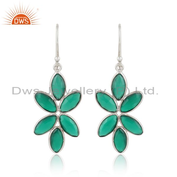 Green Onyx Gemstone Floral Designer Sterling Fine Silver Earrings