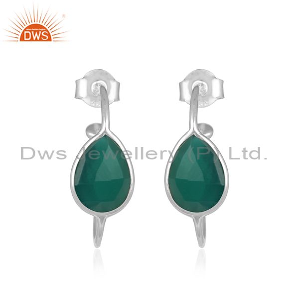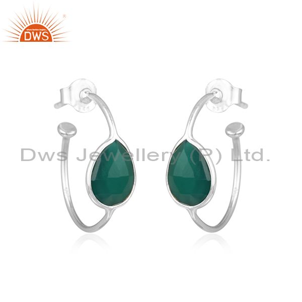 Green Onyx Gemstone Sterling 925 Silver Hoop Earrings Manufacturer