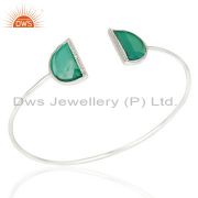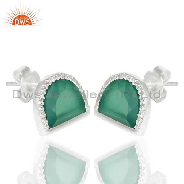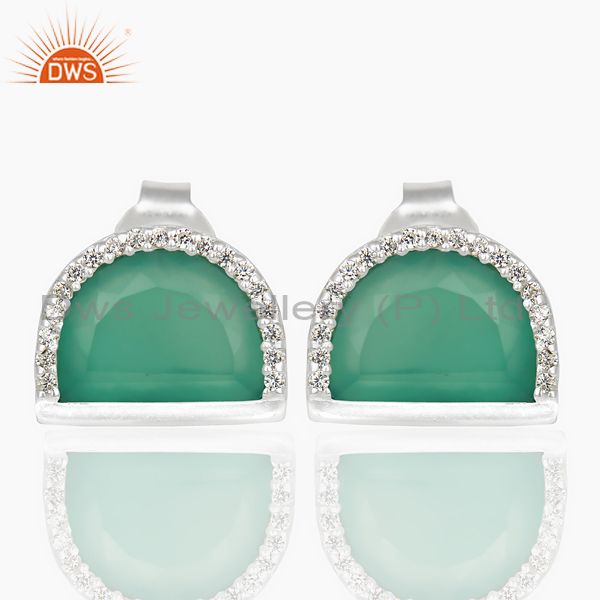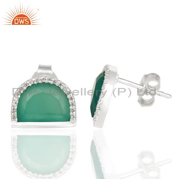 Green Onyx Half Moon Cz Stud 92.5 Sterling Silver Trendy Earring