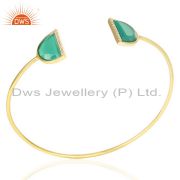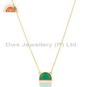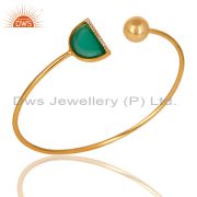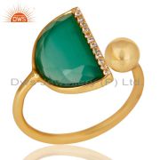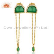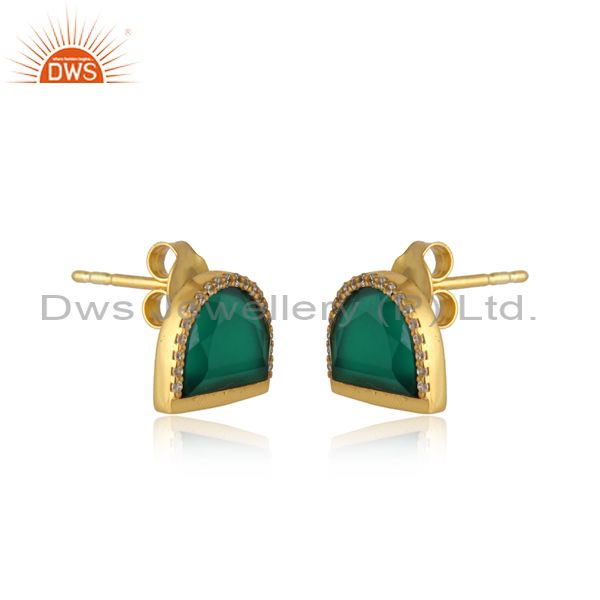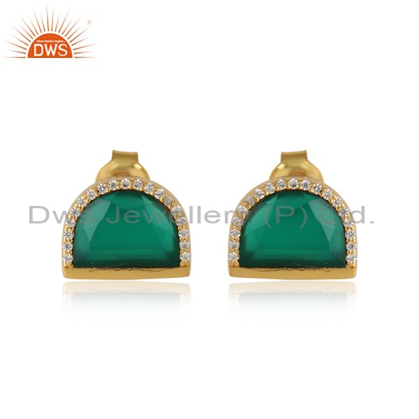 Green Onyx Half Moon Cz Stud Gold Plated 92.5 Sterling Silver Earring