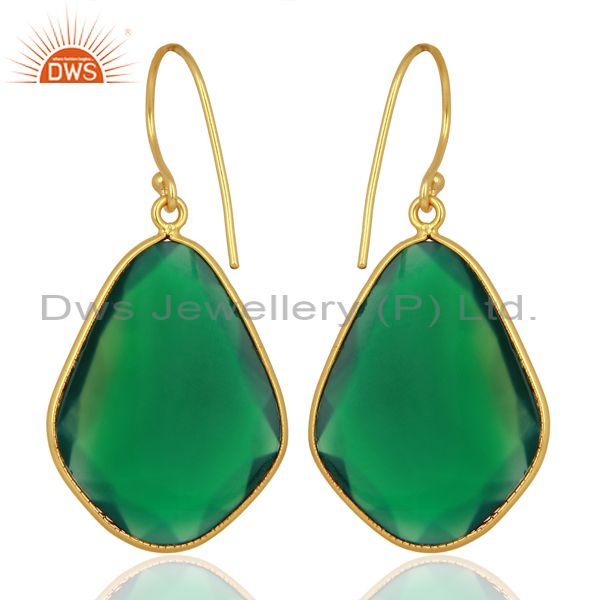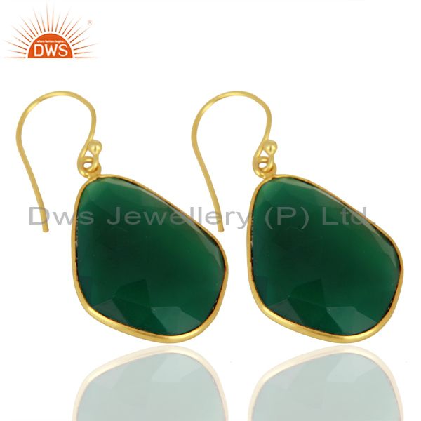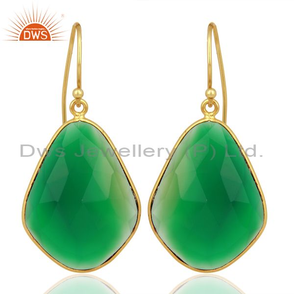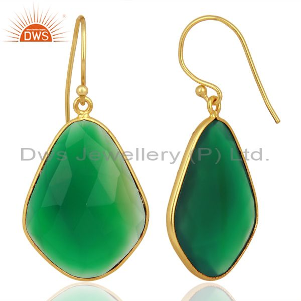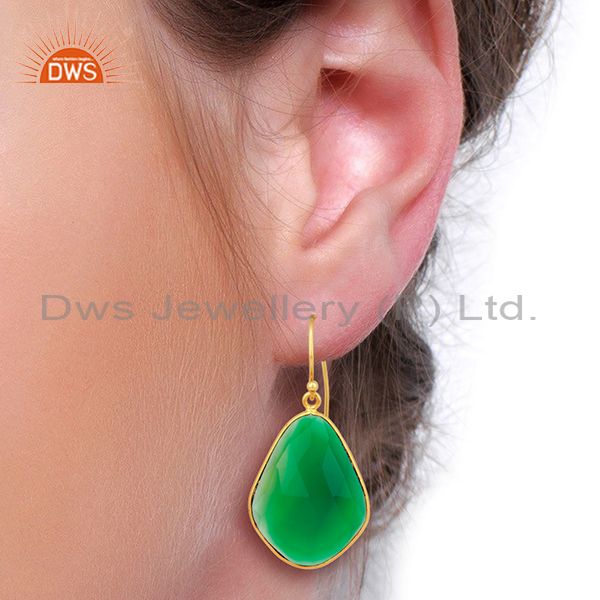 Green Onyx Large Single Drop Gold Plated 92.5 Sterling Silver Earring