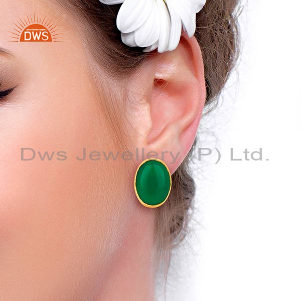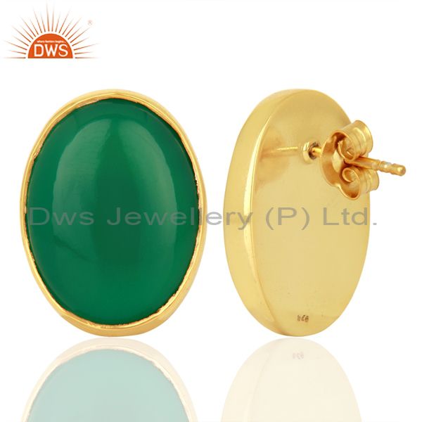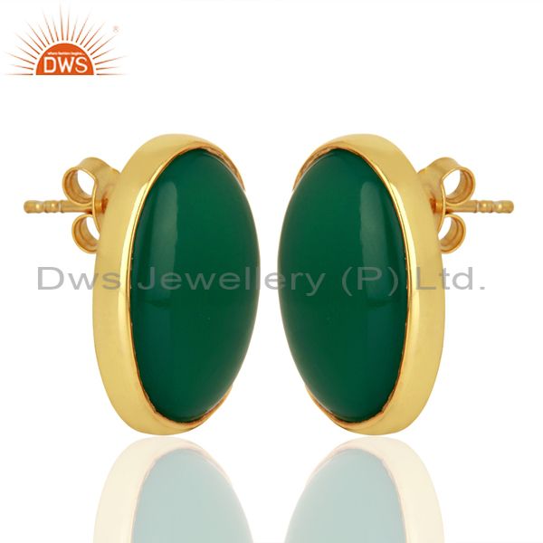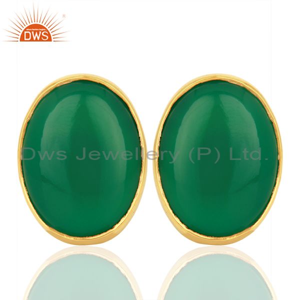 Green Onyx Oval Bezel Set Sterling Silver Gemstone Jewellery Stud Earrings