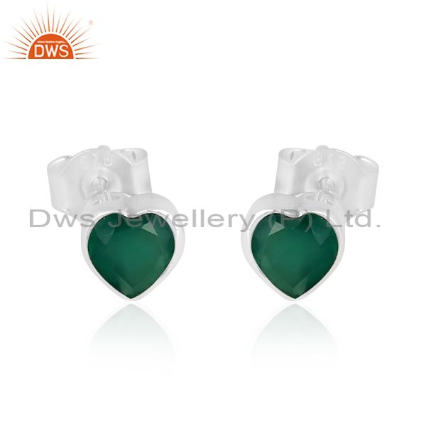 Green Onyx Set Fine 925 Sterling Silver Hear Shaped Earrings