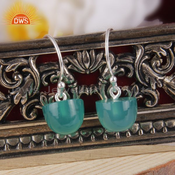 Green Onyx Set Fine 925 Sterling Silver Long Fancy Earrings