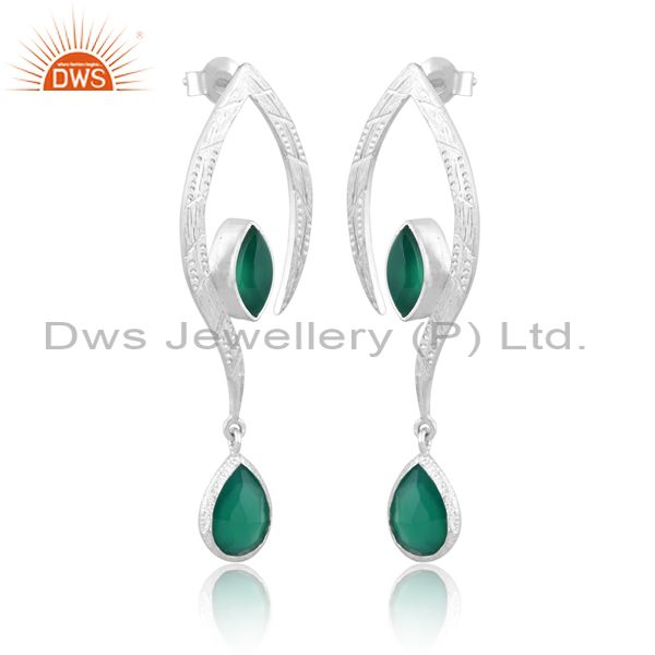 Green Onyx Set Fine Sterling Silver Classy Designer Earrings