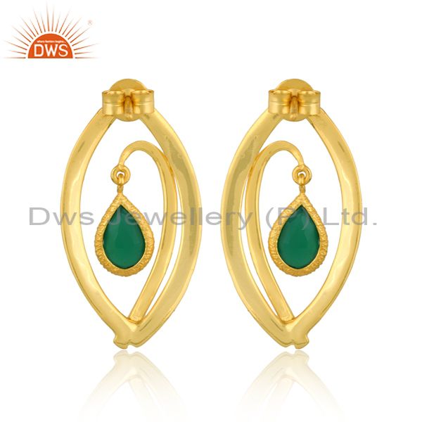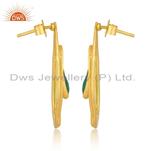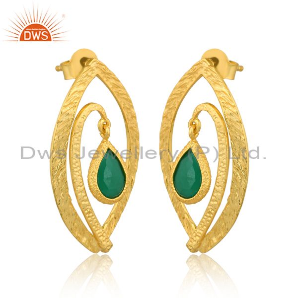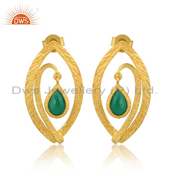 Green Onyx Set Gold On 925 Silver Handmade Textured Earrings