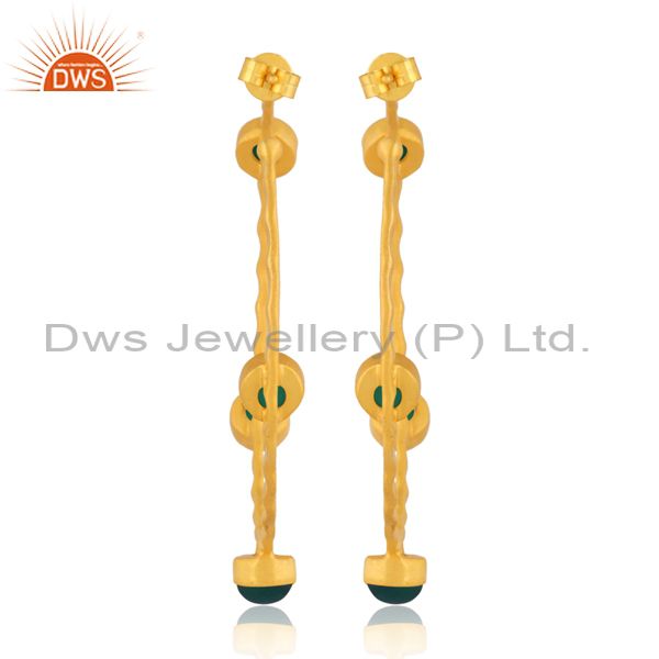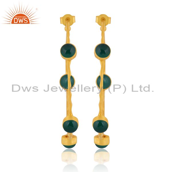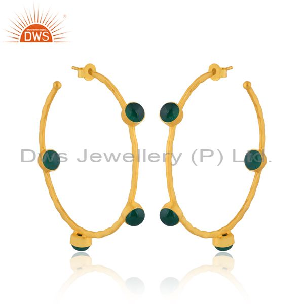 Green Onyx Set Gold On Sterling Silver Round Hoop Earrings