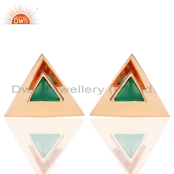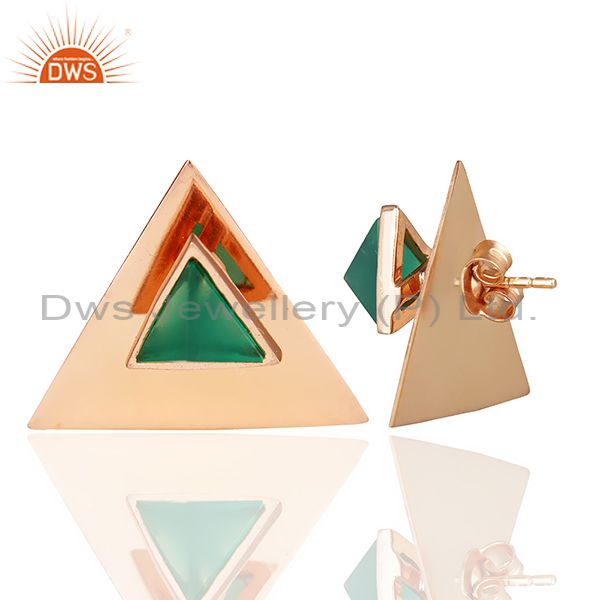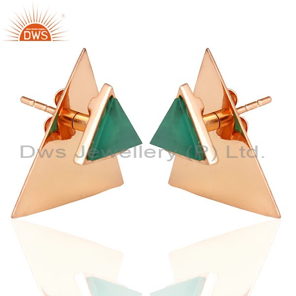 Green Onyx Stud 14K Yellow Gold Plated 925 Sterling Silver Earrings Jewelry