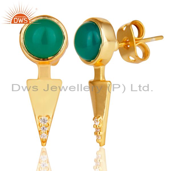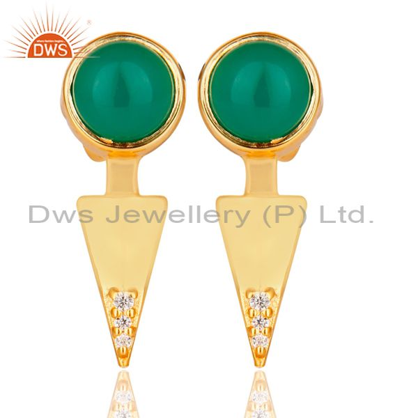 Green Onyx Studded Gold Plated Double Ear Jacket In 92.5 Sterling Silver