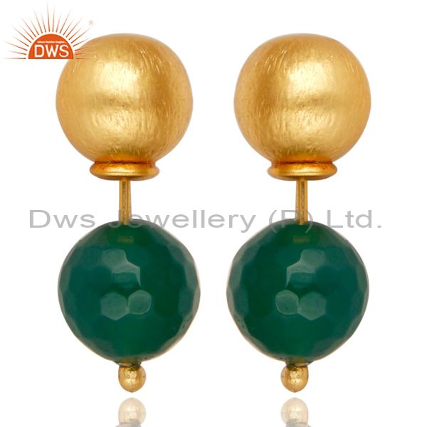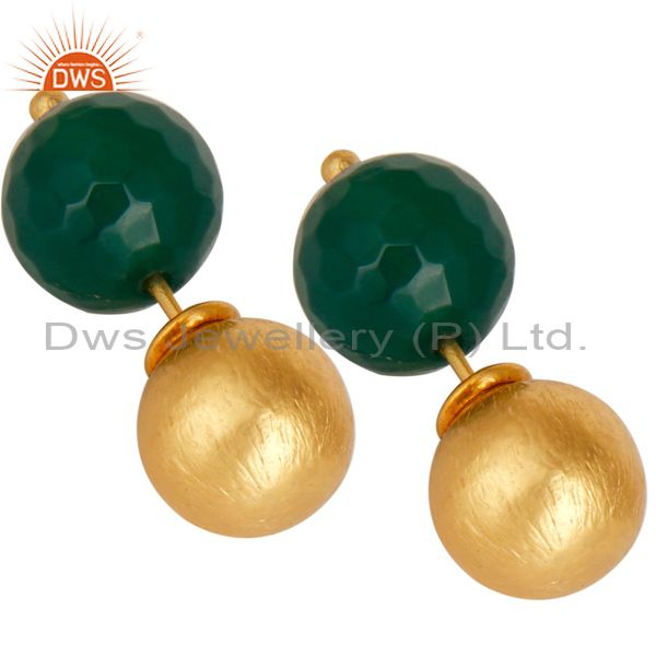 GREEN Onyx Two Way Stud Ball Stud Post 14 K Gold Plated Fashion Giift Earring