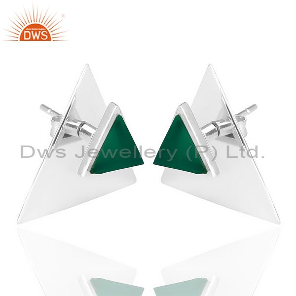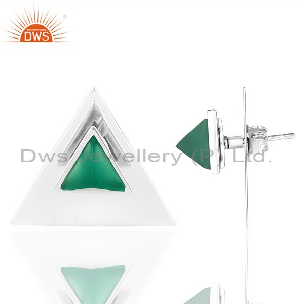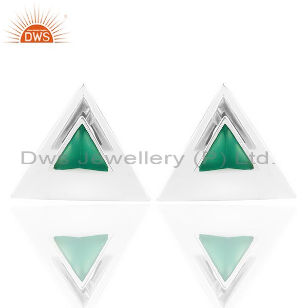 Green Onyx Two Way Stud Triangle White Rhodium 92.5 Sterling Silver Earring