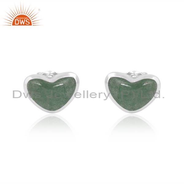 Green Strawberry Quartz Heart Earrings