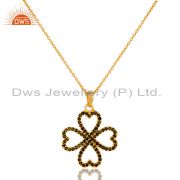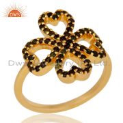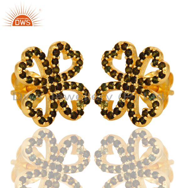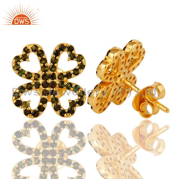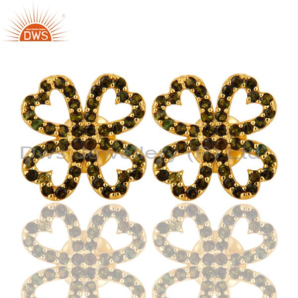 Green Tourmaline 18K Gold Plated 925 Silver Heart Flower Design Stud Earring