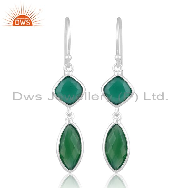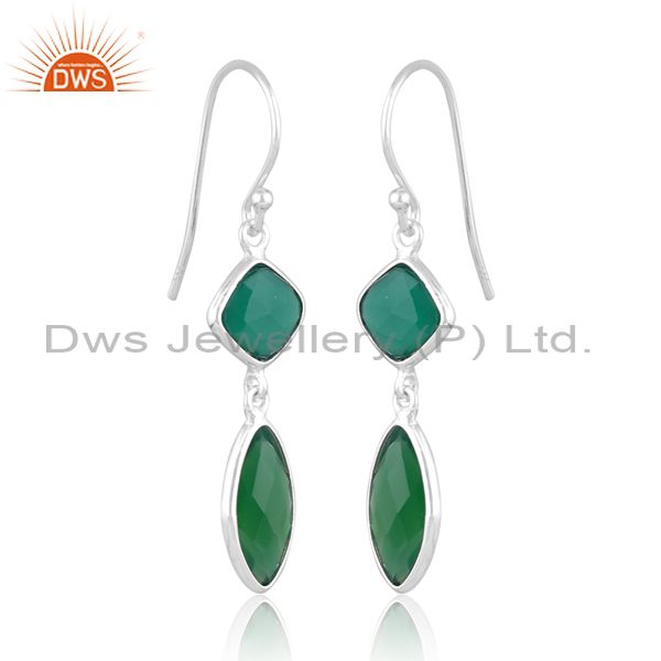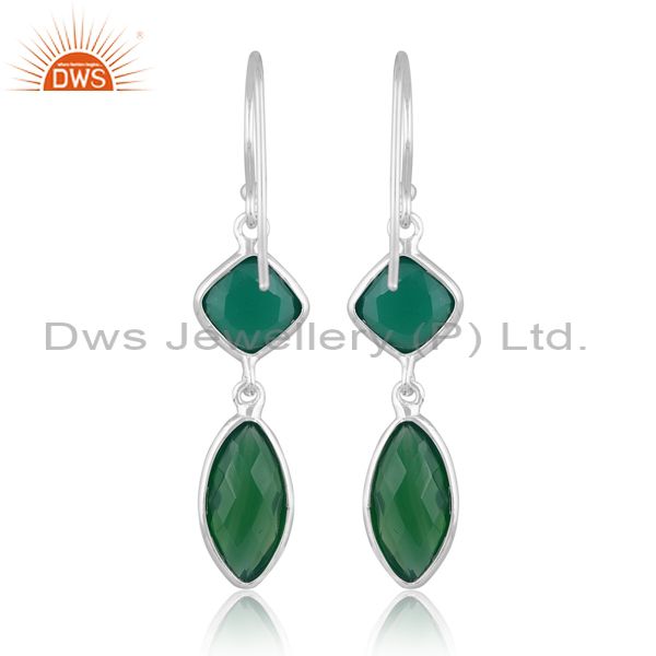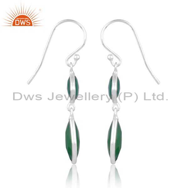 Greenonyx Set Fine925 Sterling Silver Long Drop Earrings