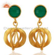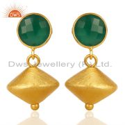 Hadnmade 925 Sterling Silver Gold Plated Green Onyx Gemstone Designer Earrings