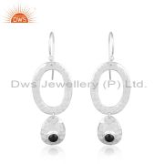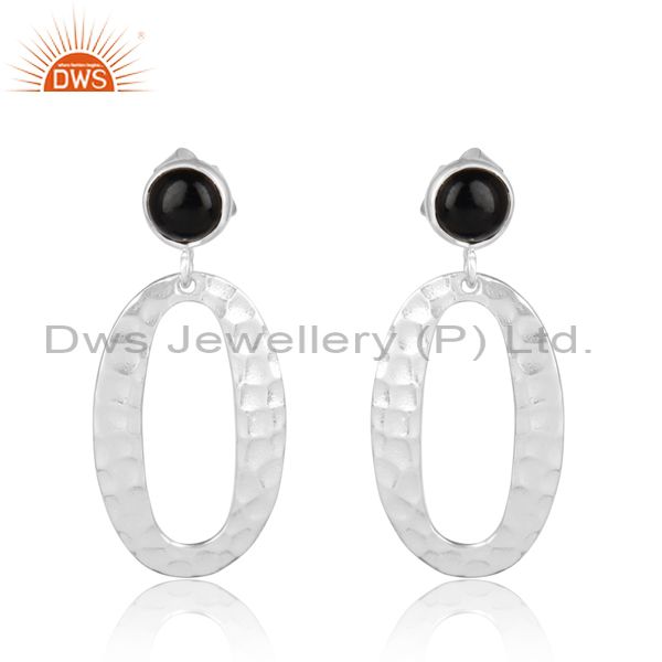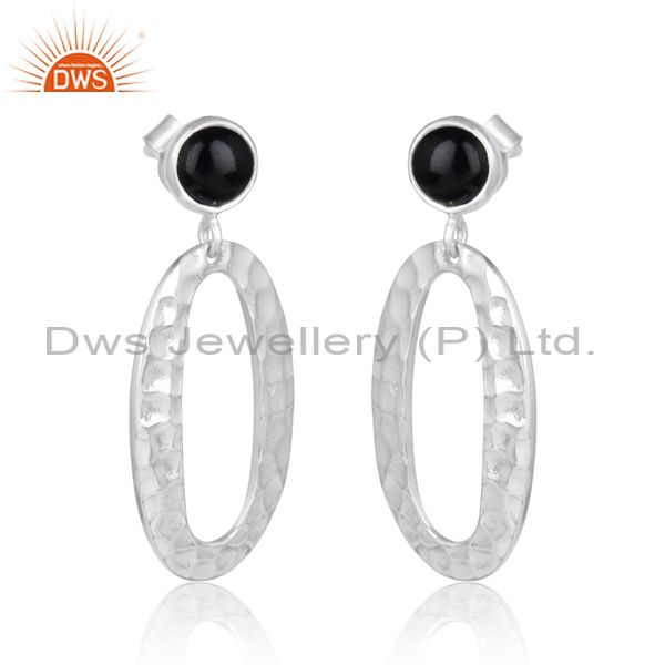 Hammered Circle Sterling Silver Black Onyx Dangle