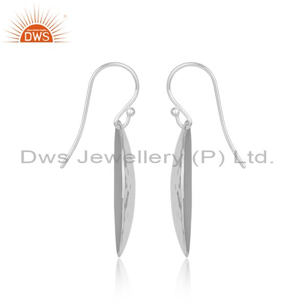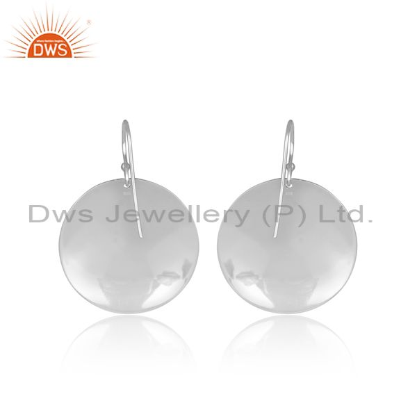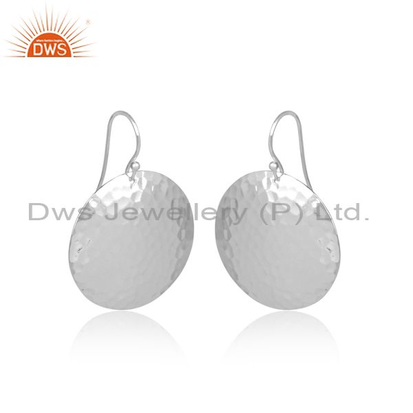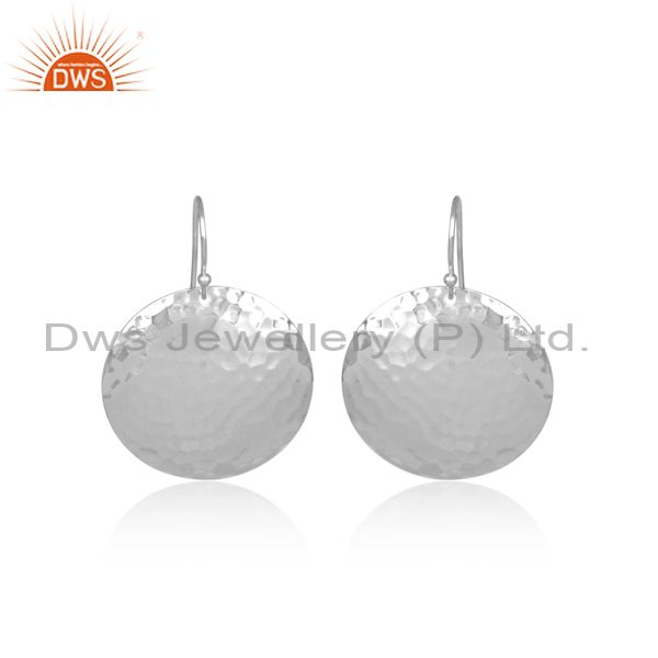 Hammered Coin Shaped White Plated Silver Wire Hook Earrings