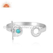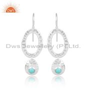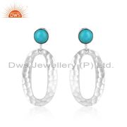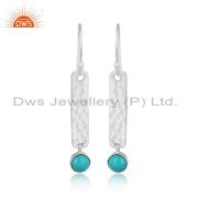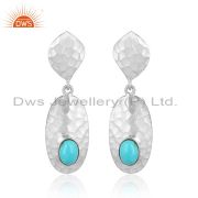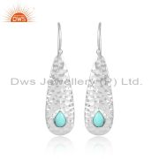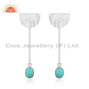Hammered Design Sterling Silver Long Dangle With Arizona Turquoise