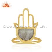 Hamsa Hand Gold Plated 925 Sliver Labradorite Gemstone Stud Earring Manufacturer
