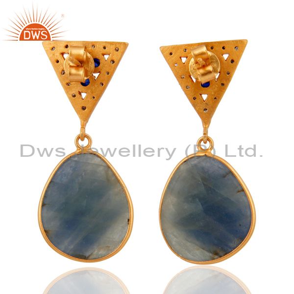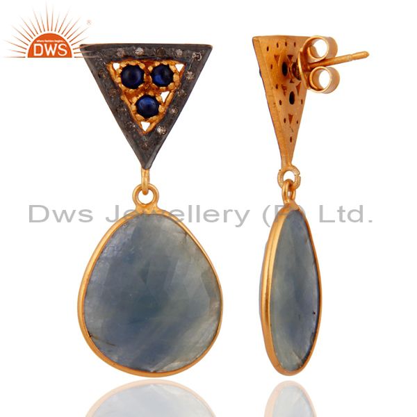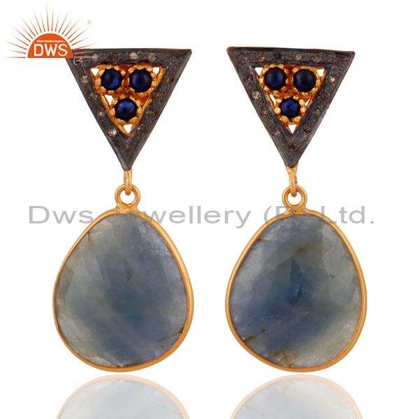 Hand Crafted Sterling Silver Bezel Set Blue Sapphire Slice Women Fashion Earring