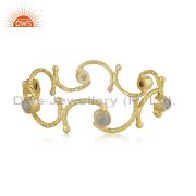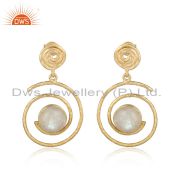 Hand Textured Dainty Spiral Gold On Silver Rainbow Moonstone Earring