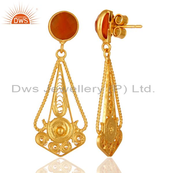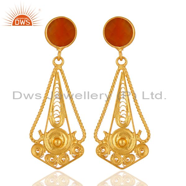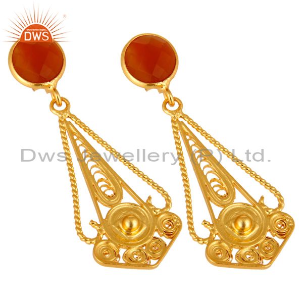 Handcarfted 18K Gold Plated 925 Sterling Silver Red Onyx Earring Jewelry