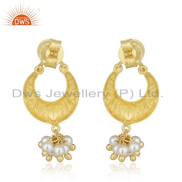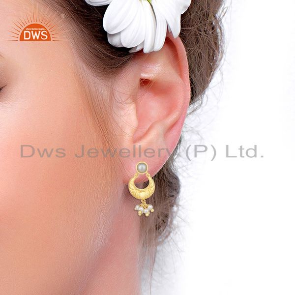 Handcrafted 925 Silver Gold Plated White Pearl Earrings Wholesale Jewelry Spply