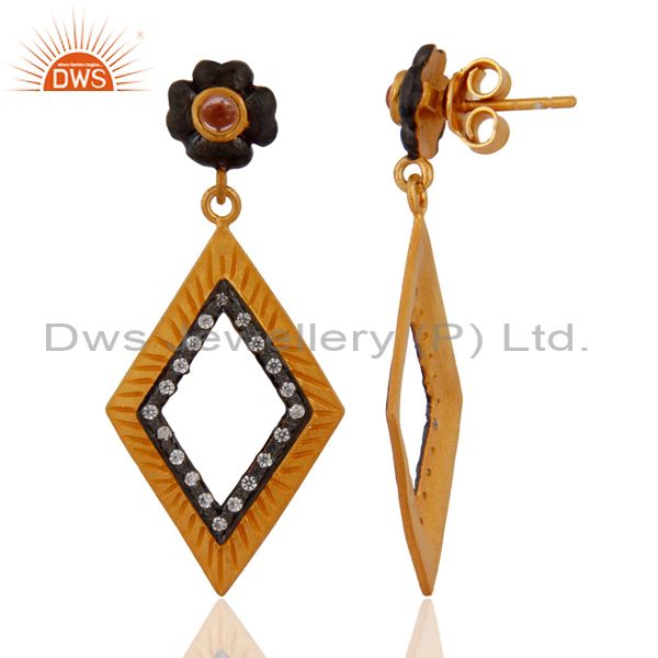 Handcrafted 925 Sterling Silver Gold Plated Tourmaline Gemstone Designer Earring