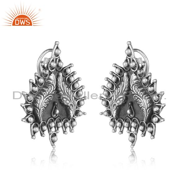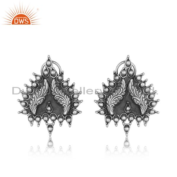Handcrafted Artistic Tribal Textured Stud in Oxidized Silver 925